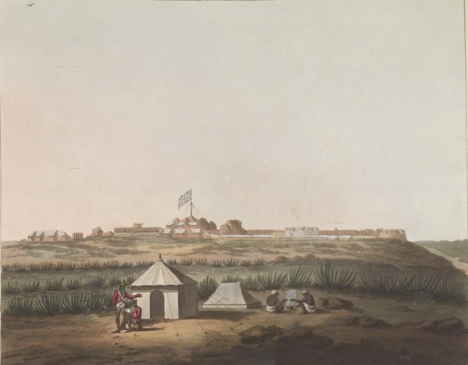 | Keywords: N.W. angle of Osar.jpg en Artist Hunter James d 1792 Medium Aquatint coloured Date 1804 Plate thirty from 'Picturesque Scenery in the Kingdom of Mysore' by James Hunter d 1792 This aquatint is based on a picture by Hunter showing the old fort at Hosur in Tamil Nadu Hunter served as a Lieutenant in the Royal Artillery and his sketches portrayed aspects of military and everyday life Here we see some sepoys camped in the foreground and in the background a large Union Jack flying above the walled town 1804 http //www europeana eu/portal/search html query hosur Hunter James PD-old-100 Uploaded with UploadWizard Historical images of Hosur Tamil Nadu in the 1800s |