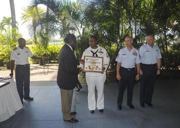 Keywords: NAACP honors military leadership on Pearl Harbor 140913-N-FK070-023.jpg en Yeoman 1st Class Latoya Calvin receives the National Association for the Advancement of Colored People NAACP Dr Mary McLeod Bethune Inspirational Leadership Award from Alphonso Braggs president of the Honolulu-Hawaii chapter of the NAACP Sept 13 The Honolulu-Hawaii Chapter of NAACP held a Military Leader Awards luncheon at the Hickam Officer ™s Club Calvin was among 14 recipients to receive an award honoring their commitment leadership and community service U S Navy photo by Mass Communication Specialist 2nd Class Brian Wilbur/Released 2014-09-13 Petty Officer 2nd Class Brian Wilbur https //www dvidshub net/image/1550959 140913-N-FK070-023 2014-09-15 15 06 PEARL HARBOR HI US PD-USGov-Military-Navy NAACP Images from DoD uploaded by Fæ |