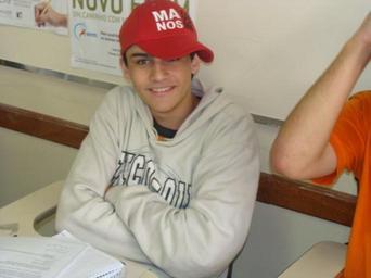 | Keywords: Nab.jpg en Felipe speding your time studying pt Felipe dedicando seu tempo aos estudos Sala de aula Fotografia tirada em sala de aula 2009-09-10 Escola do Futuro Sitting with arms folded across chest Adolescent boys smiling Males with baseball caps |