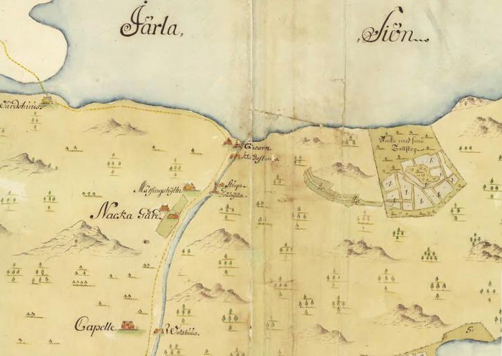 | Keywords: Nacka gård 1698.jpg sv Del av kartan som visar Nacka gård och mässingshyttan http //historiskakartor lantmateriet se/arken/s/show html showmap true archive LMS nbOfImages 2 sd_base lms2 sd_ktun 4c4d535f4136372d32323a32 Lantmäteriet Lars Kietzlingh 1698 Nacka gård PD-old-100 |