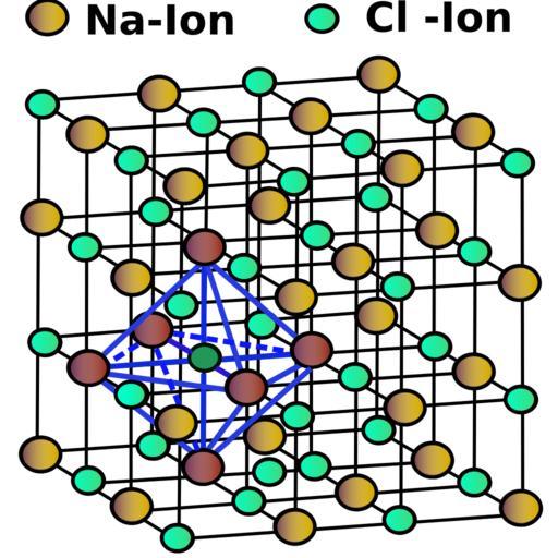 Keywords: NaCl-Ionengitter.svg Ionengitter von Natriumchlorid ion grid of Sodium chloride own 2006-12-25 Sundance Raphael 22 49 25 December 2006 UTC frei verwendbar Crystal structure of sodium chloride