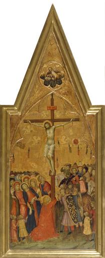 | Keywords: Naddo Ceccarelli - The Crucifixion - Walters 37737.jpg Originally the central panel of a portable triptych three-panel painting this work reflects the mid 14th-century demand for lively crowd-filled paintings featuring key moments in Christ's life The painter has enhanced the worshipers' connection to sacred history by having the participants in the scene wear contemporary costumes and using stippled gold leaf to imitate the texture of the chain mail worn by soldiers Perhaps most important the Virgin's collapse into the arms of her companions and her anguished facial expression convey the depth of her participation in her son's suffering For more information on this panel please see Zeri catalogue number 24 pp 42-43 between 1350 1359 Medieval tempera gold panel H including modern gilded molding 26 x W 10 9/16 x D 3/8 in 66 x 26 8 x 1 cm accession number 37 737 21724 Henry Walters Baltimore prior to 1909 mode of acquisition unknown Walters Art Museum Henry Walters Acquired by Henry Walters before 1909 The International Style The Arts in Europe Around 1400 The Walters Art Gallery Baltimore 1962 place of origin Siena Italy Walters Art Museum license 3D Medieval art in the Walters Art Museum Naddo Ceccarelli Paintings in the Walters Art Museum Media contributed by the Walters Art Museum needs category review |