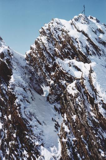 Keywords: nadelhorn mountain summit hole in the summit matterhorn in the hole alpine aerial view rock strange switzerland nature sky winter mountains