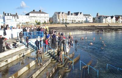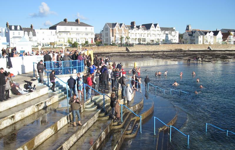 Keywords: Nagegie d'Noué au Hâvre des Pas Jèrri 25 d'Dézembre 2010 02.jpg Lé 25 d'Dézembre 2010 un fliotchet d'monde lus bangnîtent s'lon la couôteunme dans la bangnérêsse du Hâvre des Pas Saint Hélyi Jèrri The traditional Christmas Day swim at Havre des Pas bathing pool brought a crowd of swimmers supporters and spectators out on 25th December 2010 in Saint Helier Jersey own photo 25 dé Dézembre 2010 Man vyi Own work all rights released Public domain Christmas 2010 in Jersey 25 December 2010 in Saint Helier Jersey People of Jersey in 2010 Swimming in Jersey Winter swimming 2010 in swimming Havre des Pas bathing pool Coasts of Saint Helier Jersey |