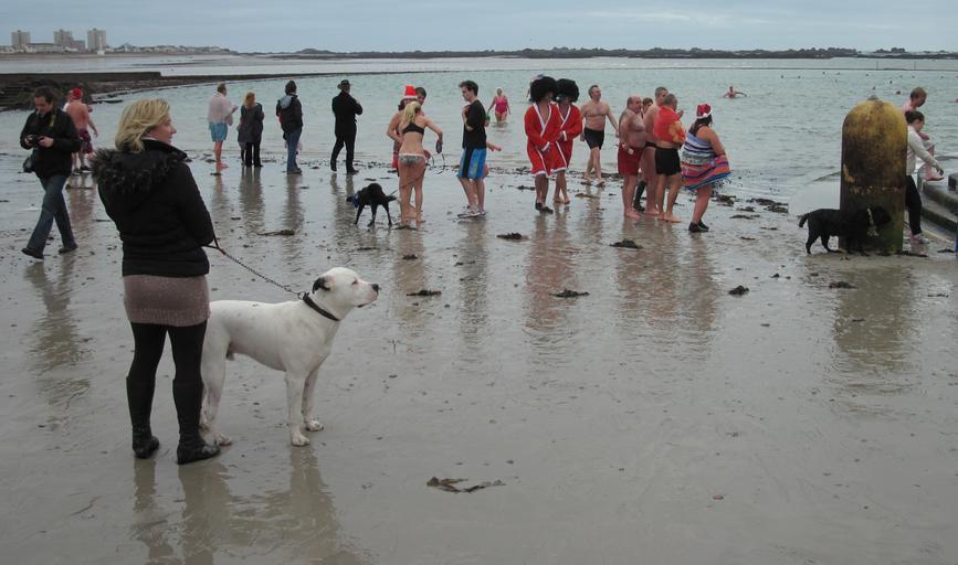 Keywords: Nagegie d'Noué au Hâvre des Pas Jèrri 25 d'Dézembre 2011 15.jpg Lé 25 d'Dézembre 2011 un fliotchet d'monde lus bangnîtent s'lon la couôteunme dans la bangnérêsse du Hâvre des Pas Saint Hélyi Jèrri The traditional Christmas Day swim at Havre des Pas bathing pool brought a crowd of swimmers supporters and spectators out on 25th December 2011 in Saint Helier Jersey own photo 2011-12-25 12 15 44 Man vyi 2011 in Saint Helier Jersey People of Jersey in 2011 Christmas 2011 in Jersey Swimming in Jersey 2011 in swimming Dogs at the beach Winter swimming |