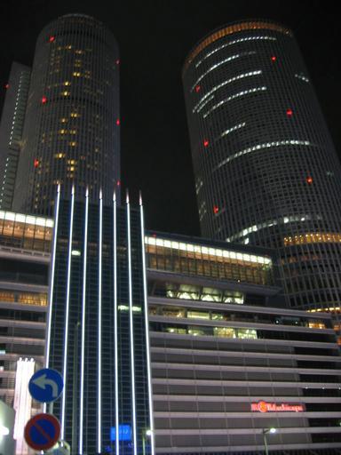 Keywords: Nagoya Station (1040).JPG Photo taken by User Jiang on August 16 2005 JR Central Towers JR Nagoya Takashimaya Nagoya Station at night 2005-08-16 own assumed Jiang