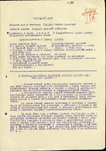 | Keywords: Nagr List Talykov 1.jpg Official document for awarding Mikhail Talykov with order of Lenin Mihhail Talõkovile Lenini ordeni andmise käskkiri ru аг адной лист с подтве ждением подвига 1 1942-11-14 PD-RU-exempt SeoSaytum other versions Documents of the Soviet Union 1942 November 1942 in the Soviet Union 1942-11-14 |