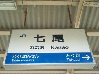 Keywords: Nanao.sta-pannel.JPG 七尾駅標識 own 2009-04-18 nanaoshimin cropped Vantey Files uploaded by Vantey Nanao Station Train station signs in Ishikawa prefecture Train station signs of West Japan Railway Company
