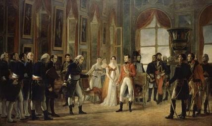| Keywords: Napoléon Ier reçoit à Saint-Cloud le Senatus-Consulte qui le proclame empereur des Français.jpg Artwork creator Georges Rouget oil on canvas cm institution Versailles commandé par Louis-Philippe pour le musée historique de Versailles en 1837 object history credit line http //www art com/products/p8122031176-sa-i5275176/georges-rouget-napoleon-ier-recoit-a-saint-cloud-le-senatus-consulte-qui-le-proclame-empereur-des-francais-18 htm 2011-06-29 000PE004979 PD-old-100 Other versions PD-old-100 Uploaded with UploadWizard Paintings of Napoleon I Senators of the First French Empire Château de Saint-Cloud 1804 in Paris 18 May 19th-century paintings in the Musée national du Château de Versailles History paintings in the Musée national du Château de Versailles Georges Rouget Jean-Jacques-Régis de Cambacérès Charles-François Lebrun duc de Plaisance Gerard Duroc Nicolas Jean-de-Dieu Soult Jean-Andoche Junot Joachim Murat François Christophe Kellermann André Masséna Louis-Alexandre Berthier Eugène de Beauharnais Charles XIV John of Sweden Jean-Baptiste Bessières Charles-Maurice de Talleyrand Volney Joseph-Marie Vien Paintings of Joséphine de Beauharnais Caroline Bonaparte Hortense de Beauharnais Bernard Germain de Lacépède |