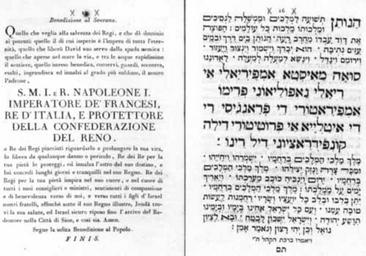 | Keywords: Napoleon Prayer.jpg en A Jewish prayer written by the Jews of Livorno Confederation of the Rhine for Napoleon on his 38th birthday in Hebrew and Italian Published in the Hod Malchut Glory of Sovereignty Siddur 1808 קונפדרציה ש הריין שנכתבה כבוד נפו יאון רג יו הו דתו ה-38 בעברית ובאיט קית הודפס בסידור הוד מ כות 1808 1808-01-15 Hod Malchut Glory of Sovereignty Livorno 1808 Jews of Livorno other versions PD-old-70-1923 Jewish Prayer for Royalty Confederation of the Rhine | ||||