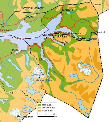 Keywords: Narvik map.jpg en Map of Narvik municipality Norway Own Jensens 2008-12-06 Maps of Nordland Narvik