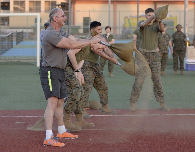 Keywords: NAS Sigonella enables the forward operations and responsiveness of U.S. and allied forces in support of Navy Region, Europe, Africa, Southwest Asia's mission to provide services to the Fleet, Fighter, and Family. 160728-N-GC965-047.jpg en 160728-N-GC965-047 NAS SIGONELLA Sicily July 28 2016 Celebrity Chef Robert Irvine performs sandbag thrusts during physical training with the Special Purpose Marine Air-Ground Task Force - Crisis Response - Africa at NAS 2 Turf Field July 28 NAS Sigonella enables the forward operations and responsiveness of U S and allied forces in support of Navy Region Europe Africa Southwest Asia's mission to provide services to the Fleet Fighter and Family U S Navy photo by Mass Communication Specialist 2nd Class Ramon Go/Released <br>Unit Navy Media Content Services 2016-07-28 Ramon G Go https //www dvidshub net/image/2767296/nas-sigonella-enables-forward-operations-and-responsiveness-us-and-allied-forces-support-navy-region-europe-africa 160728-N-GC965-047 2016-08-04 00 32 NAS SIGONELLA IT PD-USGov-Military-Navy Special Purpose Marine Air-Ground Task Forces Images from DoD uploaded by Fæ |