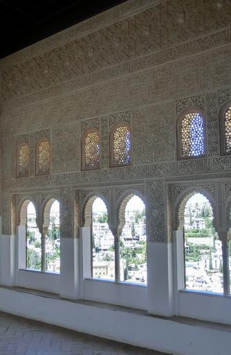 Keywords: nasridenpalast alhambra spain andalusia relief art architecture moorish window outlook view granada world heritage building decorated wall arabic