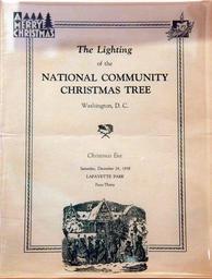 | Keywords: National Community Christmas Tree Lighting Ceremony Program 1938.jpg en The program from the lighting ceremony for the 1938 National Community Christmas Tree The United States first hosted a National Christmas Tree in 1923 At the time it was a cut tree and erected in the center of The Ellipse From 1924 to 1933 a live tree was planted in Sherman Square south of the U S Department of the Treasurer Building In 1934 two live Fraser fir trees were planted in Lafayette Square The trees alternated as the National Christmas Tree to help reduce damage to the trees from the heavy ornaments and lights The last time they were used was 1938 In 1939 and 1940 two red cedar trees were temporarily moved to the north edge of The Ellipse In 1941 two Oriental spruce trees were planted on the South Lawn of the White House and again used in alternative years as the National Christmas Tree Cut trees were again used beginning in 1954 and the tree was moved to the north edge of The Ellipse again The cut tree was replaced with a live tree in 1973 It's been replaced several times but a live tree has been used ever since http //www flickr com/photos/23165290 N00/7235952910/ United States Department of the Interior original document ; Tim Evanson photograph December 1938 original document ; 2012-05-15 White House in 1938 Christmas 1938 U S National Christmas Trees PD-USGov cc-by-sa-2 0 dctim1 http //flickr com/photos/23165290 N00/7235952910 2012-05-30 22 50 12 cc-by-sa-2 0 Files from Tim Evanson Flickr stream |