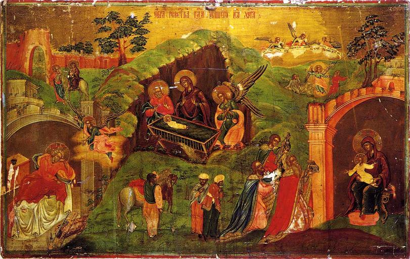 | Keywords: Nativity and adoration of the Magi.jpg Nativity and adoration of the Magi Рождество Х истово с поклонением волхвов Школа или худ цент Кыштым Пе вая т еть XIX в Де ево шпонки в езные Паволока левкас темпе а 44 5 × 70 5 × 3 2 см Из п аздничного чина из Кыштыма Изоб ажение восп оизводится по изданию У альская икона Живописная езная и литая икона XVIII начала XX в Екате инбу г Изд-во У альского униве ситета 1998 http //www icon-art info/masterpiece php lng ru mst_id 2531 century 19 anonimus PD-old-100 Icons of the nativity of Jesus Christ Icons of the Adoration of the Magi Icons of Dormition of Virgin Mary Swaddling in Frescos Icons of Nativity in Russia 19th-century paintings in Russia |
