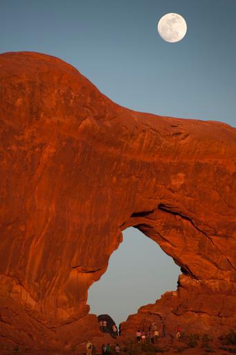 Keywords: natural rock bridge full moon night bright light landscape nature colorful sky desert scenic geology rocks erosion formation