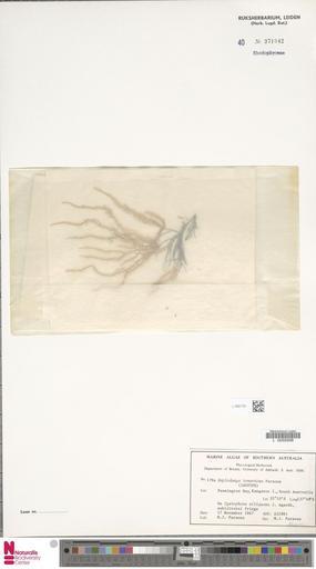 | Keywords: Naturalis Biodiversity Center - L.4067781 - Haplodasya tomentosa M.J.Parsons - Algae - Plant type specimen.jpeg artwork Dimensions artwork Document type Algae Haplodasya Parsons MJ Individual count Infraspecific epithet Infraspecific rank Institution Naturalis Kind of unit artwork Kind of unit specimen Life stage Pennington bay Kangaroo Island South Australia Lat -35 883 S Long 137 8 E Medium artwork Nomenclatural code On Cystophora siliquosa J AgardhSublittoral fringe Occurrence ID page Other fields Other versions artwork Permission license Naturalis donation CC0 Publication location Scientific name Haplodasya tomentosa M J Parsons type of - Haplodasya tomentosa M J Parsons species Scientific name authorship M J Parsons Source url http //bioportal naturalis nl Specific epithet tomentosa State or province South Australia Kangaroo Island Pennington Bay Subject keywords artwork Subject keywords publication Title artwork Title publication Type status isotype Uploaded with GWToolset Naturalis_Biodiversity_Center_-_L 4067781_-_Haplodasya_tomentosa_M J Parsons_-_Algae_-_Plant_type_specimen http //medialib naturalis nl/file/id/L 4067781/format/large Media donated by Naturalis Biodiversity Center Plant type specimens at Naturalis Biodiversity Center Haplodasya tomentosa Haplodasya |