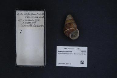 Keywords: Naturalis Biodiversity Center - RMNH.MOL.309110 - Hypselostyla concinna (Sowerby, 1841) - Bradybaenidae - Mollusc shell.jpeg artwork Dimensions artwork Document type Bradybaenidae Hypselostyla Individual count Infraspecific epithet Infraspecific rank Institution Naturalis Kind of unit artwork Kind of unit specimen shell Life stage Medium artwork Nomenclatural code Source institute Rijksmuseum van Natuurlijke Historie Leiden Scale the width of the text on the species/QR-code label is 38 mm Occurrence ID page Other fields Other versions artwork Permission license Naturalis donation CC-0 Mollusca Publication location Scientific name Hypselostyla concinna Sowerby 1841 Scientific name authorship Sowerby 1841 Source url http //bioportal naturalis nl Specific epithet concinna State or province Subject keywords artwork Subject keywords publication Title artwork Title publication Type status Uploaded with GWToolset Naturalis_Biodiversity_Center_-_RMNH MOL 309110_-_Hypselostyla_concinna_ Sowerby _1841 _-_Bradybaenidae_-_Mollusc_shell http //medialib naturalis nl/file/id/RMNH MOL 309110/format/large Media donated by Naturalis Biodiversity Center Molluscs at Naturalis from the Rijksmuseum van Natuurlijke Historie Hypselostyla concinna Hypselostyla |