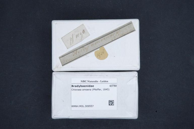 Keywords: Naturalis Biodiversity Center - RMNH.MOL.309557 1 - Chloraea amoena (Pfeiffer, 1845) - Bradybaenidae - Mollusc shell.jpeg artwork Dimensions artwork Document type Bradybaenidae Chloraea Individual count Infraspecific epithet Infraspecific rank Institution Naturalis Kind of unit artwork Kind of unit specimen shell Life stage Medium artwork Nomenclatural code Source institute Rijksmuseum van Natuurlijke Historie Leiden Scale the width of the text on the species/QR-code label is 38 mm Occurrence ID page Other fields Other versions artwork Permission license Naturalis donation CC-0 Mollusca Publication location Scientific name Chloraea amoena Pfeiffer 1845 Scientific name authorship Pfeiffer 1845 Source url http //bioportal naturalis nl Specific epithet amoena State or province Subject keywords artwork Subject keywords publication Title artwork Title publication Type status Uploaded with GWToolset Naturalis_Biodiversity_Center_-_RMNH MOL 309557_1_-_Chloraea_amoena_ Pfeiffer _1845 _-_Bradybaenidae_-_Mollusc_shell http //medialib naturalis nl/file/id/RMNH MOL 309557_1/format/large Media donated by Naturalis Biodiversity Center Molluscs at Naturalis from the Rijksmuseum van Natuurlijke Historie Chloraea amoena Chloraea |