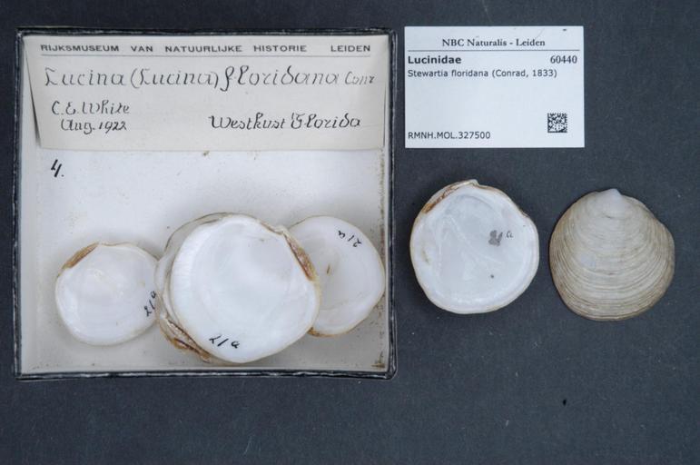 | Keywords: Naturalis Biodiversity Center - RMNH.MOL.327500 - Stewartia floridana (Conrad, 1833) - Lucinidae - Mollusc shell.jpeg artwork Dimensions artwork Document type Lucinidae Stewartia Individual count Infraspecific epithet Infraspecific rank Institution Naturalis Kind of unit artwork Kind of unit specimen shell Life stage Medium artwork Nomenclatural code Source institute Rijksmuseum van Natuurlijke Historie Leiden Scale the width of the text on the species/QR-code label is 38 mm Occurrence ID page Other fields Other versions artwork Permission license Naturalis donation CC-0 Mollusca Publication location Scientific name Stewartia floridana Conrad 1833 Scientific name authorship Conrad 1833 Source url http //bioportal naturalis nl Specific epithet floridana State or province Subject keywords artwork Subject keywords publication Title artwork Title publication Type status Uploaded with GWToolset Naturalis_Biodiversity_Center_-_RMNH MOL 327500_-_Stewartia_floridana_ Conrad _1833 _-_Lucinidae_-_Mollusc_shell http //medialib naturalis nl/file/id/RMNH MOL 327500/format/large Media donated by Naturalis Biodiversity Center Molluscs at Naturalis from the Rijksmuseum van Natuurlijke Historie Stewartia floridana Stewartia |