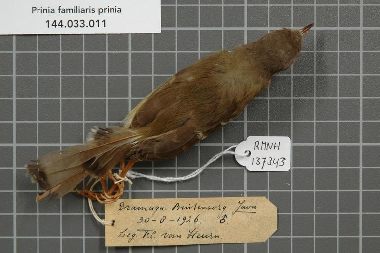 | Keywords: Naturalis Biodiversity Center - RMNH.AVES.137343 1 - Prinia familiaris prinia (Temminck, 1822) - Sylviidae - bird skin specimen.jpeg artwork Dimensions artwork Document type Sylviidae Prinia Individual count 1 Infraspecific epithet prinia Infraspecific rank Institution Naturalis Kind of unit artwork Kind of unit specimen skin Life stage Indonesia Java Buitenzorg Dramaga Medium artwork Nomenclatural code Occurrence ID page Other fields Other versions artwork Permission license Naturalis donation CC-0 Publication location Scientific name Prinia familiaris prinia Temminck 1822 Scientific name authorship Temminck 1822 male Source url http //bioportal naturalis nl Specific epithet familiaris State or province Subject keywords artwork Subject keywords publication Title artwork Title publication Type status Uploaded with GWToolset Naturalis_Biodiversity_Center_-_RMNH AVES 137343_1_-_Prinia_familiaris_prinia_ Temminck _1822 _-_Sylviidae_-_bird_skin_specimen http //medialib naturalis nl/file/id/RMNH AVES 137343_1/format/large Media donated by Naturalis Biodiversity Center Songbird specimens at Naturalis Biodiversity Center Prinia familiaris Prinia |