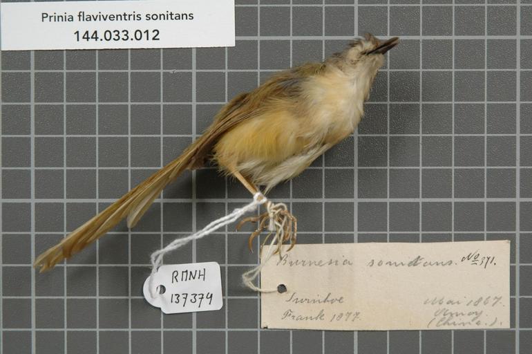 | Keywords: Naturalis Biodiversity Center - RMNH.AVES.137374 1 - Prinia flaviventris sonitans Swinhoe, 1860 - Sylviidae - bird skin specimen.jpeg artwork Dimensions artwork Document type Sylviidae Prinia Individual count 1 Infraspecific epithet sonitans Infraspecific rank Institution Naturalis Kind of unit artwork Kind of unit specimen skin Life stage Chine Amoy Medium artwork Nomenclatural code Occurrence ID page Other fields Other versions artwork Permission license Naturalis donation CC-0 Publication location Scientific name Prinia flaviventris sonitans Swinhoe 1860 Scientific name authorship Swinhoe 1860 Source url http //bioportal naturalis nl Specific epithet flaviventris State or province Subject keywords artwork Subject keywords publication Title artwork Title publication Type status Uploaded with GWToolset Naturalis_Biodiversity_Center_-_RMNH AVES 137374_1_-_Prinia_flaviventris_sonitans_Swinhoe _1860_-_Sylviidae_-_bird_skin_specimen http //medialib naturalis nl/file/id/RMNH AVES 137374_1/format/large Media donated by Naturalis Biodiversity Center Songbird specimens at Naturalis Biodiversity Center Prinia flaviventris Prinia |