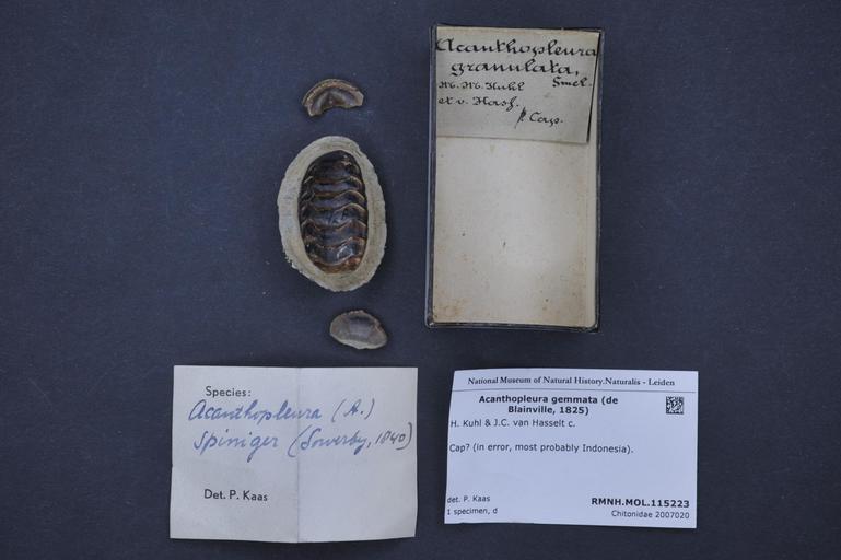 | Keywords: Naturalis Biodiversity Center - RMNH.MOL.115223 - Acanthopleura gemmata (de Blainville, 1825) - Chitonidae - Mollusc shell.jpeg artwork Dimensions artwork Document type Chitonidae Acanthopleura Kaas P Individual count Infraspecific epithet - Infraspecific rank Institution Naturalis Kind of unit artwork Kind of unit specimen shell Life stage Cap in error most probably Indonesia Medium artwork Nomenclatural code Source institute Leiden Scale the width of the text on the species/QR-code label is 38 mm Occurrence ID page Other fields Other versions artwork Permission license Naturalis donation CC-0 Mollusca Publication location Scientific name Acanthopleura gemmata de Blainville 1825 Scientific name authorship De Blainville 1825 Source url http //bioportal naturalis nl Specific epithet gemmata State or province Subject keywords artwork Subject keywords publication Title artwork Title publication Type status - Uploaded with GWToolset Naturalis_Biodiversity_Center_-_RMNH MOL 115223_-_Acanthopleura_gemmata_ de_Blainville _1825 _-_Chitonidae_-_Mollusc_shell http //medialib naturalis nl/file/id/RMNH MOL 115223/format/large Molluscs at Naturalis from the Rijksmuseum van Natuurlijke Historie Media donated by Naturalis Biodiversity Center Acanthopleura gemmata |