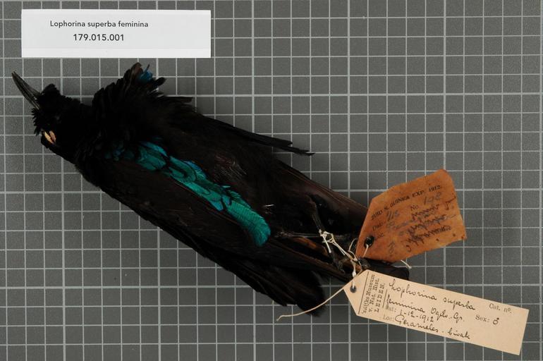 | Keywords: Naturalis Biodiversity Center - RMNH.AVES.140799 1 - Lophorina superba feminina Grant, 1915 - Paradisaeidae - bird skin specimen.jpeg  artwork Dimensions artwork Document type Paradisaeidae Lophorina Individual count 1 Infraspecific epithet feminina Infraspecific rank Institution Naturalis Kind of unit artwork Kind of unit specimen skin Life stage Perameles-bivak Medium artwork Nomenclatural code Occurrence ID page Other fields Other versions artwork Permission license Naturalis donation CC-0 Publication location Scientific name Lophorina superba feminina Grant 1915 Scientific name authorship Grant 1915 male Source url http //bioportal naturalis nl Specific epithet superba State or province Subject keywords artwork Subject keywords publication Title artwork Title publication Type status Uploaded with GWToolset Naturalis_Biodiversity_Center_-_RMNH AVES 140799_1_-_Lophorina_superba_feminina_Grant _1915_-_Paradisaeidae_-_bird_skin_specimen http //medialib naturalis nl/file/id/RMNH AVES 140799_1/format/large Media donated by Naturalis Biodiversity Center Songbird specimens at Naturalis Biodiversity Center Lophorina superba Lophorina |