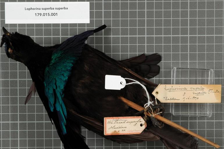 | Keywords: Naturalis Biodiversity Center - RMNH.AVES.140804 1 - Lophorina superba superba (Pennant, 1781) - Paradisaeidae - bird skin specimen.jpeg  artwork Dimensions artwork Document type Paradisaeidae Lophorina Individual count 1 Infraspecific epithet superba Infraspecific rank Institution Naturalis Kind of unit artwork Kind of unit specimen skin Life stage Haddam Medium artwork Nomenclatural code Occurrence ID page Other fields Other versions artwork Permission license Naturalis donation CC-0 Publication location Scientific name Lophorina superba superba Pennant 1781 Scientific name authorship Pennant 1781 male Source url http //bioportal naturalis nl Specific epithet superba State or province Subject keywords artwork Subject keywords publication Title artwork Title publication Type status Uploaded with GWToolset Naturalis_Biodiversity_Center_-_RMNH AVES 140804_1_-_Lophorina_superba_superba_ Pennant _1781 _-_Paradisaeidae_-_bird_skin_specimen http //medialib naturalis nl/file/id/RMNH AVES 140804_1/format/large Media donated by Naturalis Biodiversity Center Songbird specimens at Naturalis Biodiversity Center Lophorina superba Lophorina |