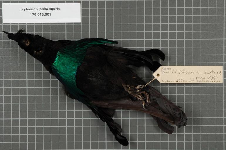 | Keywords: Naturalis Biodiversity Center - RMNH.AVES.140806 2 - Lophorina superba superba (Pennant, 1781) - Paradisaeidae - bird skin specimen.jpeg  artwork Dimensions artwork Document type Paradisaeidae Lophorina Individual count 1 Infraspecific epithet superba Infraspecific rank Institution Naturalis Kind of unit artwork Kind of unit specimen skin Life stage Indonesia N W Nieuw Guinea Medium artwork Nomenclatural code Occurrence ID page Other fields Other versions artwork Permission license Naturalis donation CC-0 Publication location Scientific name Lophorina superba superba Pennant 1781 Scientific name authorship Pennant 1781 male Source url http //bioportal naturalis nl Specific epithet superba State or province N W Nieuw Guinea Subject keywords artwork Subject keywords publication Title artwork Title publication Type status Uploaded with GWToolset Naturalis_Biodiversity_Center_-_RMNH AVES 140806_2_-_Lophorina_superba_superba_ Pennant _1781 _-_Paradisaeidae_-_bird_skin_specimen http //medialib naturalis nl/file/id/RMNH AVES 140806_2/format/large Media donated by Naturalis Biodiversity Center Songbird specimens at Naturalis Biodiversity Center Lophorina superba Lophorina |