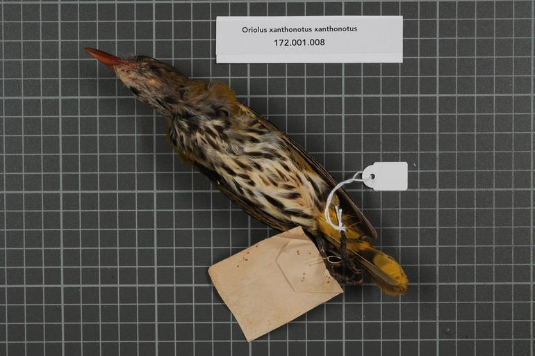 Keywords: Naturalis Biodiversity Center - RMNH.AVES.141208 2 - Oriolus xanthonotus xanthonotus Horsfield, 1821 - Oriolidae - bird skin specimen.jpeg artwork Dimensions artwork Document type Oriolidae Oriolus Individual count 1 Infraspecific epithet xanthonotus Infraspecific rank Institution Naturalis Kind of unit artwork Kind of unit specimen skin Life stage juvenile P Princeza - Palawan Medium artwork Nomenclatural code Additional info dLocality remark unclear Occurrence ID page Other fields Other versions artwork Permission license Naturalis donation CC-0 Publication location Scientific name Oriolus xanthonotus xanthonotus Horsfield 1821 Scientific name authorship Horsfield 1821 male Source url http //bioportal naturalis nl Specific epithet xanthonotus State or province Subject keywords artwork Subject keywords publication Title artwork Title publication Type status Uploaded with GWToolset Naturalis_Biodiversity_Center_-_RMNH AVES 141208_2_-_Oriolus_xanthonotus_xanthonotus_Horsfield _1821_-_Oriolidae_-_bird_skin_specimen http //medialib naturalis nl/file/id/RMNH AVES 141208_2/format/large Media donated by Naturalis Biodiversity Center Songbird specimens at Naturalis Biodiversity Center Oriolus xanthonotus Oriolus |