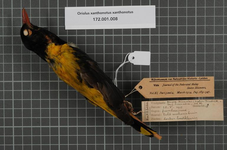 Keywords: Naturalis Biodiversity Center - RMNH.AVES.141207 1 - Oriolus xanthonotus xanthonotus Horsfield, 1821 - Oriolidae - bird skin specimen.jpeg artwork Dimensions artwork Document type Oriolidae Oriolus Individual count 1 Infraspecific epithet xanthonotus Infraspecific rank Institution Naturalis Kind of unit artwork Kind of unit specimen skin Life stage Indonesia Sumatra Ophir Distrikten Muara Kiawai Medium artwork Nomenclatural code Occurrence ID page Other fields Other versions artwork Permission license Naturalis donation CC-0 Publication location Scientific name Oriolus xanthonotus xanthonotus Horsfield 1821 Scientific name authorship Horsfield 1821 male Source url http //bioportal naturalis nl Specific epithet xanthonotus State or province Sumatra Ophir Distrikten Subject keywords artwork Subject keywords publication Title artwork Title publication Type status Uploaded with GWToolset Naturalis_Biodiversity_Center_-_RMNH AVES 141207_1_-_Oriolus_xanthonotus_xanthonotus_Horsfield _1821_-_Oriolidae_-_bird_skin_specimen http //medialib naturalis nl/file/id/RMNH AVES 141207_1/format/large Media donated by Naturalis Biodiversity Center Songbird specimens at Naturalis Biodiversity Center Oriolus xanthonotus Oriolus |
