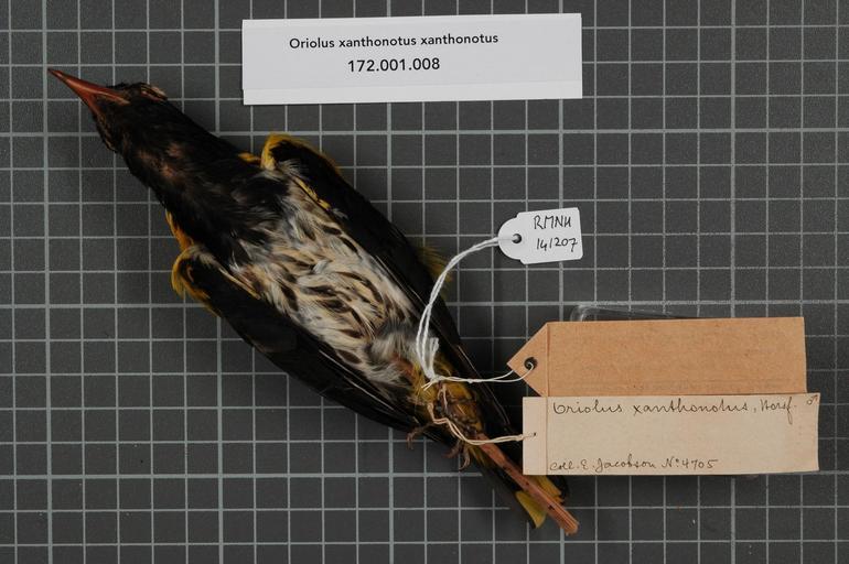 Keywords: Naturalis Biodiversity Center - RMNH.AVES.141207 2 - Oriolus xanthonotus xanthonotus Horsfield, 1821 - Oriolidae - bird skin specimen.jpeg artwork Dimensions artwork Document type Oriolidae Oriolus Individual count 1 Infraspecific epithet xanthonotus Infraspecific rank Institution Naturalis Kind of unit artwork Kind of unit specimen skin Life stage Indonesia Sumatra Ophir Distrikten Muara Kiawai Medium artwork Nomenclatural code Occurrence ID page Other fields Other versions artwork Permission license Naturalis donation CC-0 Publication location Scientific name Oriolus xanthonotus xanthonotus Horsfield 1821 Scientific name authorship Horsfield 1821 male Source url http //bioportal naturalis nl Specific epithet xanthonotus State or province Sumatra Ophir Distrikten Subject keywords artwork Subject keywords publication Title artwork Title publication Type status Uploaded with GWToolset Naturalis_Biodiversity_Center_-_RMNH AVES 141207_2_-_Oriolus_xanthonotus_xanthonotus_Horsfield _1821_-_Oriolidae_-_bird_skin_specimen http //medialib naturalis nl/file/id/RMNH AVES 141207_2/format/large Media donated by Naturalis Biodiversity Center Songbird specimens at Naturalis Biodiversity Center Oriolus xanthonotus Oriolus |