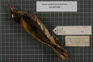 Keywords: Naturalis Biodiversity Center - RMNH.AVES.141210 1 - Oriolus xanthonotus xanthonotus Horsfield, 1821 - Oriolidae - bird skin specimen.jpeg artwork Dimensions artwork Document type Oriolidae Oriolus Individual count 1 Infraspecific epithet xanthonotus Infraspecific rank Institution Naturalis Kind of unit artwork Kind of unit specimen skin Life stage Indonesia Java Gedangan Semarang Medium artwork Nomenclatural code General remarks Part of info in bahasa Indonesia Occurrence ID page Other fields Other versions artwork Permission license Naturalis donation CC-0 Publication location Scientific name Oriolus xanthonotus xanthonotus Horsfield 1821 Scientific name authorship Horsfield 1821 male Source url http //bioportal naturalis nl Specific epithet xanthonotus State or province Subject keywords artwork Subject keywords publication Title artwork Title publication Type status Uploaded with GWToolset Naturalis_Biodiversity_Center_-_RMNH AVES 141210_1_-_Oriolus_xanthonotus_xanthonotus_Horsfield _1821_-_Oriolidae_-_bird_skin_specimen http //medialib naturalis nl/file/id/RMNH AVES 141210_1/format/large Media donated by Naturalis Biodiversity Center Songbird specimens at Naturalis Biodiversity Center Oriolus xanthonotus Oriolus |