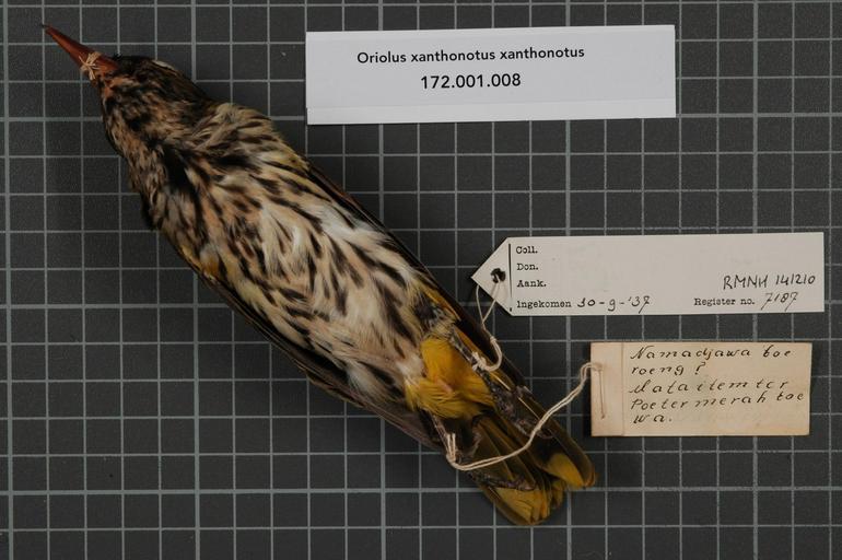 Keywords: Naturalis Biodiversity Center - RMNH.AVES.141210 2 - Oriolus xanthonotus xanthonotus Horsfield, 1821 - Oriolidae - bird skin specimen.jpeg artwork Dimensions artwork Document type Oriolidae Oriolus Individual count 1 Infraspecific epithet xanthonotus Infraspecific rank Institution Naturalis Kind of unit artwork Kind of unit specimen skin Life stage Indonesia Java Gedangan Semarang Medium artwork Nomenclatural code General remarks Part of info in bahasa Indonesia Occurrence ID page Other fields Other versions artwork Permission license Naturalis donation CC-0 Publication location Scientific name Oriolus xanthonotus xanthonotus Horsfield 1821 Scientific name authorship Horsfield 1821 male Source url http //bioportal naturalis nl Specific epithet xanthonotus State or province Subject keywords artwork Subject keywords publication Title artwork Title publication Type status Uploaded with GWToolset Naturalis_Biodiversity_Center_-_RMNH AVES 141210_2_-_Oriolus_xanthonotus_xanthonotus_Horsfield _1821_-_Oriolidae_-_bird_skin_specimen http //medialib naturalis nl/file/id/RMNH AVES 141210_2/format/large Media donated by Naturalis Biodiversity Center Songbird specimens at Naturalis Biodiversity Center Oriolus xanthonotus Oriolus |