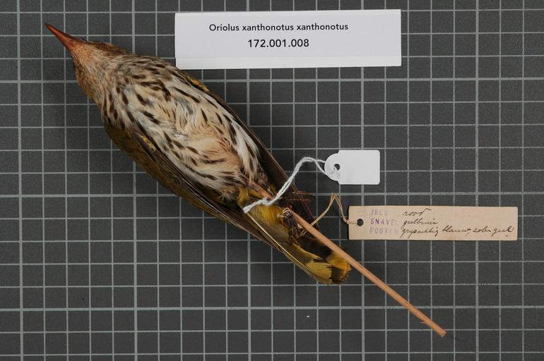 Keywords: Naturalis Biodiversity Center - RMNH.AVES.141214 2 - Oriolus xanthonotus xanthonotus Horsfield, 1821 - Oriolidae - bird skin specimen.jpeg artwork Dimensions artwork Document type Oriolidae Oriolus Individual count 1 Infraspecific epithet xanthonotus Infraspecific rank Institution Naturalis Kind of unit artwork Kind of unit specimen skin Life stage Nanga Raoen Medium artwork Nomenclatural code Occurrence ID page Other fields Other versions artwork Permission license Naturalis donation CC-0 Publication location Scientific name Oriolus xanthonotus xanthonotus Horsfield 1821 Scientific name authorship Horsfield 1821 female Source url http //bioportal naturalis nl Specific epithet xanthonotus State or province Subject keywords artwork Subject keywords publication Title artwork Title publication Type status Uploaded with GWToolset Naturalis_Biodiversity_Center_-_RMNH AVES 141214_2_-_Oriolus_xanthonotus_xanthonotus_Horsfield _1821_-_Oriolidae_-_bird_skin_specimen http //medialib naturalis nl/file/id/RMNH AVES 141214_2/format/large Media donated by Naturalis Biodiversity Center Songbird specimens at Naturalis Biodiversity Center Oriolus xanthonotus Oriolus |