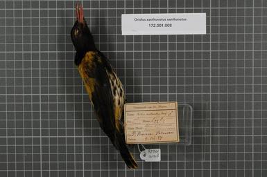 Keywords: Naturalis Biodiversity Center - RMNH.AVES.141218 1 - Oriolus xanthonotus xanthonotus Horsfield, 1821 - Oriolidae - bird skin specimen.jpeg artwork Dimensions artwork Document type Oriolidae Oriolus Individual count 1 Infraspecific epithet xanthonotus Infraspecific rank Institution Naturalis Kind of unit artwork Kind of unit specimen skin Life stage P Princeza - Palawan Medium artwork Nomenclatural code Occurrence ID page Other fields Other versions artwork Permission license Naturalis donation CC-0 Publication location Scientific name Oriolus xanthonotus xanthonotus Horsfield 1821 Scientific name authorship Horsfield 1821 male Source url http //bioportal naturalis nl Specific epithet xanthonotus State or province Subject keywords artwork Subject keywords publication Title artwork Title publication Type status Uploaded with GWToolset Naturalis_Biodiversity_Center_-_RMNH AVES 141218_1_-_Oriolus_xanthonotus_xanthonotus_Horsfield _1821_-_Oriolidae_-_bird_skin_specimen http //medialib naturalis nl/file/id/RMNH AVES 141218_1/format/large Media donated by Naturalis Biodiversity Center Songbird specimens at Naturalis Biodiversity Center Oriolus xanthonotus Oriolus |