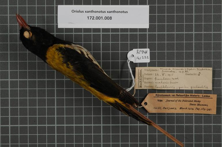 Keywords: Naturalis Biodiversity Center - RMNH.AVES.141222 1 - Oriolus xanthonotus xanthonotus Horsfield, 1821 - Oriolidae - bird skin specimen.jpeg artwork Dimensions artwork Document type Oriolidae Oriolus Individual count 1 Infraspecific epithet xanthonotus Infraspecific rank Institution Naturalis Kind of unit artwork Kind of unit specimen skin Life stage Indonesia Sumatra Ophir Distrikten Muara Kiawai Medium artwork Nomenclatural code Occurrence ID page Other fields Other versions artwork Permission license Naturalis donation CC-0 Publication location Scientific name Oriolus xanthonotus xanthonotus Horsfield 1821 Scientific name authorship Horsfield 1821 male Source url http //bioportal naturalis nl Specific epithet xanthonotus State or province Sumatra Ophir Distrikten Subject keywords artwork Subject keywords publication Title artwork Title publication Type status Uploaded with GWToolset Naturalis_Biodiversity_Center_-_RMNH AVES 141222_1_-_Oriolus_xanthonotus_xanthonotus_Horsfield _1821_-_Oriolidae_-_bird_skin_specimen http //medialib naturalis nl/file/id/RMNH AVES 141222_1/format/large Media donated by Naturalis Biodiversity Center Songbird specimens at Naturalis Biodiversity Center Oriolus xanthonotus Oriolus |