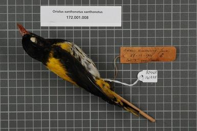 Keywords: Naturalis Biodiversity Center - RMNH.AVES.141225 1 - Oriolus xanthonotus xanthonotus Horsfield, 1821 - Oriolidae - bird skin specimen.jpeg artwork Dimensions artwork Document type Oriolidae Oriolus Individual count 1 Infraspecific epithet xanthonotus Infraspecific rank Institution Naturalis Kind of unit artwork Kind of unit specimen skin Life stage Indonesia Java Bolang Buitenzorg Medium artwork Nomenclatural code Occurrence ID page Other fields Other versions artwork Permission license Naturalis donation CC-0 Publication location Scientific name Oriolus xanthonotus xanthonotus Horsfield 1821 Scientific name authorship Horsfield 1821 male Source url http //bioportal naturalis nl Specific epithet xanthonotus State or province Subject keywords artwork Subject keywords publication Title artwork Title publication Type status Uploaded with GWToolset Naturalis_Biodiversity_Center_-_RMNH AVES 141225_1_-_Oriolus_xanthonotus_xanthonotus_Horsfield _1821_-_Oriolidae_-_bird_skin_specimen http //medialib naturalis nl/file/id/RMNH AVES 141225_1/format/large Media donated by Naturalis Biodiversity Center Songbird specimens at Naturalis Biodiversity Center Oriolus xanthonotus Oriolus |