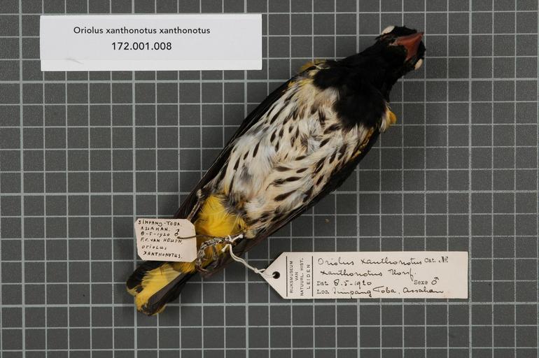 Keywords: Naturalis Biodiversity Center - RMNH.AVES.141224 1 - Oriolus xanthonotus xanthonotus Horsfield, 1821 - Oriolidae - bird skin specimen.jpeg artwork Dimensions artwork Document type Oriolidae Oriolus Individual count 1 Infraspecific epithet xanthonotus Infraspecific rank Institution Naturalis Kind of unit artwork Kind of unit specimen skin Life stage Simpang Toba Assahan Medium artwork Nomenclatural code Occurrence ID page Other fields Other versions artwork Permission license Naturalis donation CC-0 Publication location Scientific name Oriolus xanthonotus xanthonotus Horsfield 1821 Scientific name authorship Horsfield 1821 male Source url http //bioportal naturalis nl Specific epithet xanthonotus State or province Subject keywords artwork Subject keywords publication Title artwork Title publication Type status Uploaded with GWToolset Naturalis_Biodiversity_Center_-_RMNH AVES 141224_1_-_Oriolus_xanthonotus_xanthonotus_Horsfield _1821_-_Oriolidae_-_bird_skin_specimen http //medialib naturalis nl/file/id/RMNH AVES 141224_1/format/large Media donated by Naturalis Biodiversity Center Songbird specimens at Naturalis Biodiversity Center Oriolus xanthonotus Oriolus |