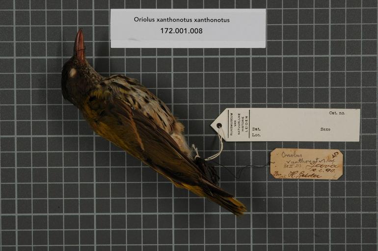 Keywords: Naturalis Biodiversity Center - RMNH.AVES.141226 1 - Oriolus xanthonotus xanthonotus Horsfield, 1821 - Oriolidae - bird skin specimen.jpeg artwork Dimensions artwork Document type Oriolidae Oriolus Individual count 1 Infraspecific epithet xanthonotus Infraspecific rank Institution Naturalis Kind of unit artwork Kind of unit specimen skin Life stage Indonesia Java Medium artwork Nomenclatural code Additional info l Occurrence ID page Other fields Other versions artwork Permission license Naturalis donation CC-0 Publication location Scientific name Oriolus xanthonotus xanthonotus Horsfield 1821 Scientific name authorship Horsfield 1821 female Source url http //bioportal naturalis nl Specific epithet xanthonotus State or province Subject keywords artwork Subject keywords publication Title artwork Title publication Type status Uploaded with GWToolset Naturalis_Biodiversity_Center_-_RMNH AVES 141226_1_-_Oriolus_xanthonotus_xanthonotus_Horsfield _1821_-_Oriolidae_-_bird_skin_specimen http //medialib naturalis nl/file/id/RMNH AVES 141226_1/format/large Media donated by Naturalis Biodiversity Center Songbird specimens at Naturalis Biodiversity Center Oriolus xanthonotus Oriolus |