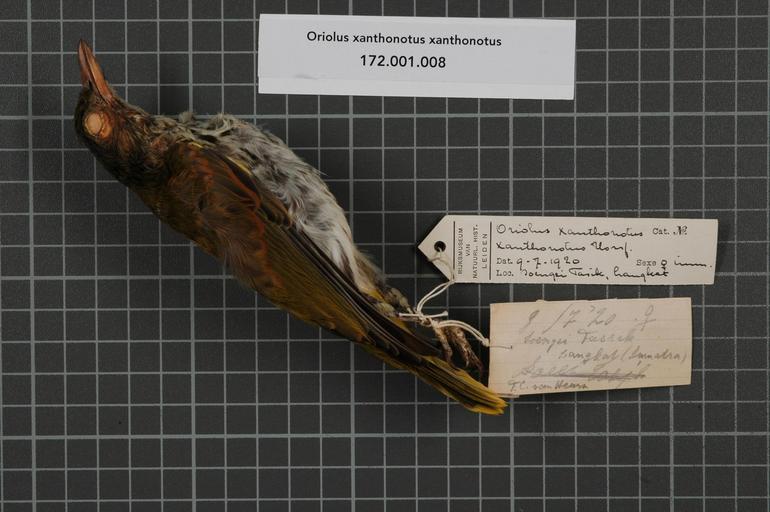 Keywords: Naturalis Biodiversity Center - RMNH.AVES.141227 1 - Oriolus xanthonotus xanthonotus Horsfield, 1821 - Oriolidae - bird skin specimen.jpeg artwork Dimensions artwork Document type Oriolidae Oriolus Individual count 1 Infraspecific epithet xanthonotus Infraspecific rank Institution Naturalis Kind of unit artwork Kind of unit specimen skin Life stage immature Indonesia Sumatra Langkat Soengei Tassik Medium artwork Nomenclatural code Locality remark On RMNH label Soengei Tasik Occurrence ID page Other fields Other versions artwork Permission license Naturalis donation CC-0 Publication location Scientific name Oriolus xanthonotus xanthonotus Horsfield 1821 Scientific name authorship Horsfield 1821 female Source url http //bioportal naturalis nl Specific epithet xanthonotus State or province Sumatra Langkat Subject keywords artwork Subject keywords publication Title artwork Title publication Type status Uploaded with GWToolset Naturalis_Biodiversity_Center_-_RMNH AVES 141227_1_-_Oriolus_xanthonotus_xanthonotus_Horsfield _1821_-_Oriolidae_-_bird_skin_specimen http //medialib naturalis nl/file/id/RMNH AVES 141227_1/format/large Media donated by Naturalis Biodiversity Center Songbird specimens at Naturalis Biodiversity Center Oriolus xanthonotus Oriolus |