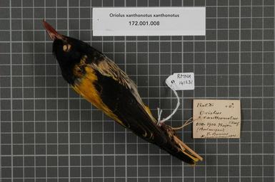 Keywords: Naturalis Biodiversity Center - RMNH.AVES.141231 1 - Oriolus xanthonotus xanthonotus Horsfield, 1821 - Oriolidae - bird skin specimen.jpeg artwork Dimensions artwork Document type Oriolidae Oriolus Individual count 1 Infraspecific epithet xanthonotus Infraspecific rank Institution Naturalis Kind of unit artwork Kind of unit specimen skin Life stage Indonesia C Borneo Bulungan Kajan Medium artwork Nomenclatural code Additional info see drawing AF Sex remark on label male Occurrence ID page Other fields Other versions artwork Permission license Naturalis donation CC-0 Publication location Scientific name Oriolus xanthonotus xanthonotus Horsfield 1821 Scientific name authorship Horsfield 1821 male Source url http //bioportal naturalis nl Specific epithet xanthonotus State or province C Borneo Bulungan Subject keywords artwork Subject keywords publication Title artwork Title publication Type status Uploaded with GWToolset Naturalis_Biodiversity_Center_-_RMNH AVES 141231_1_-_Oriolus_xanthonotus_xanthonotus_Horsfield _1821_-_Oriolidae_-_bird_skin_specimen http //medialib naturalis nl/file/id/RMNH AVES 141231_1/format/large Media donated by Naturalis Biodiversity Center Songbird specimens at Naturalis Biodiversity Center Oriolus xanthonotus Oriolus |
