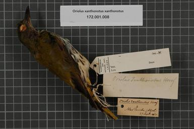 Keywords: Naturalis Biodiversity Center - RMNH.AVES.141235 1 - Oriolus xanthonotus xanthonotus Horsfield, 1821 - Oriolidae - bird skin specimen.jpeg artwork Dimensions artwork Document type Oriolidae Oriolus Individual count 1 Infraspecific epithet xanthonotus Infraspecific rank Institution Naturalis Kind of unit artwork Kind of unit specimen skin Life stage Atjeh Alas Peurba Medium artwork Nomenclatural code Additional info di alar parmbo deli atjeh Occurrence ID page Other fields Other versions artwork Permission license Naturalis donation CC-0 Publication location Scientific name Oriolus xanthonotus xanthonotus Horsfield 1821 Scientific name authorship Horsfield 1821 female Source url http //bioportal naturalis nl Specific epithet xanthonotus State or province Atjeh Subject keywords artwork Subject keywords publication Title artwork Title publication Type status Uploaded with GWToolset Naturalis_Biodiversity_Center_-_RMNH AVES 141235_1_-_Oriolus_xanthonotus_xanthonotus_Horsfield _1821_-_Oriolidae_-_bird_skin_specimen http //medialib naturalis nl/file/id/RMNH AVES 141235_1/format/large Media donated by Naturalis Biodiversity Center Songbird specimens at Naturalis Biodiversity Center Oriolus xanthonotus Oriolus |