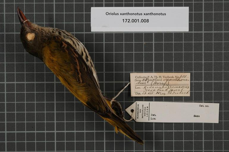 Keywords: Naturalis Biodiversity Center - RMNH.AVES.141237 1 - Oriolus xanthonotus xanthonotus Horsfield, 1821 - Oriolidae - bird skin specimen.jpeg artwork Dimensions artwork Document type Oriolidae Oriolus Individual count 1 Infraspecific epithet xanthonotus Infraspecific rank Institution Naturalis Kind of unit artwork Kind of unit specimen skin Life stage Indonesia Java Gedangan Semarang Medium artwork Nomenclatural code Additional info ora madjawa boeroeng data item terpoe termerah Occurrence ID page Other fields Other versions artwork Permission license Naturalis donation CC-0 Publication location Scientific name Oriolus xanthonotus xanthonotus Horsfield 1821 Scientific name authorship Horsfield 1821 male Source url http //bioportal naturalis nl Specific epithet xanthonotus State or province Subject keywords artwork Subject keywords publication Title artwork Title publication Type status Uploaded with GWToolset Naturalis_Biodiversity_Center_-_RMNH AVES 141237_1_-_Oriolus_xanthonotus_xanthonotus_Horsfield _1821_-_Oriolidae_-_bird_skin_specimen http //medialib naturalis nl/file/id/RMNH AVES 141237_1/format/large Media donated by Naturalis Biodiversity Center Songbird specimens at Naturalis Biodiversity Center Oriolus xanthonotus Oriolus |