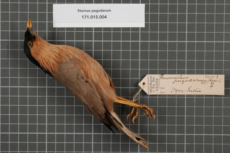 | Keywords: Naturalis Biodiversity Center - RMNH.AVES.144317 1 - Sturnus pagodarum (J.F. Gmelin, 1789) - Sturnidae - bird skin specimen.jpeg artwork Dimensions artwork Document type Sturnidae Sturnus Individual count 1 Infraspecific epithet Infraspecific rank Institution Naturalis Kind of unit artwork Kind of unit specimen skin Life stage Voor-Indie Medium artwork Nomenclatural code Occurrence ID page Other fields Other versions artwork Permission license Naturalis donation CC-0 Publication location Scientific name Sturnus pagodarum J F Gmelin 1789 Scientific name authorship J F Gmelin 1789 female Source url http //bioportal naturalis nl Specific epithet pagodarum State or province Voor-Indie Subject keywords artwork Subject keywords publication Title artwork Title publication Type status Uploaded with GWToolset Naturalis_Biodiversity_Center_-_RMNH AVES 144317_1_-_Sturnus_pagodarum_ J F _Gmelin _1789 _-_Sturnidae_-_bird_skin_specimen http //medialib naturalis nl/file/id/RMNH AVES 144317_1/format/large Media donated by Naturalis Biodiversity Center Songbird specimens at Naturalis Biodiversity Center Sturnia pagodarum |
