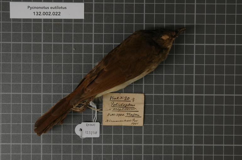 | Keywords: Naturalis Biodiversity Center - RMNH.AVES.125758 1 - Pycnonotus eutilotus (Jardine & Selby, 1837) - Pycnonotidae - bird skin specimen.jpeg artwork Dimensions artwork Document type Pycnonotidae Pycnonotus Individual count 1 Infraspecific epithet Infraspecific rank Institution Naturalis Kind of unit artwork Kind of unit specimen skin Life stage Kajan Medium artwork Nomenclatural code Additional info AF Additional info remark comment recorder K probably is symbol not letter K Occurrence ID page Other fields Other versions artwork Permission license Naturalis donation CC-0 Publication location Scientific name Pycnonotus eutilotus Jardine Selby 1837 Scientific name authorship Jardine Selby 1837 female Source url http //bioportal naturalis nl Specific epithet eutilotus State or province Subject keywords artwork Subject keywords publication Title artwork Title publication Type status Uploaded with GWToolset Naturalis_Biodiversity_Center_-_RMNH AVES 125758_1_-_Pycnonotus_eutilotus_ Jardine_ _Selby _1837 _-_Pycnonotidae_-_bird_skin_specimen http //medialib naturalis nl/file/id/RMNH AVES 125758_1/format/large Media donated by Naturalis Biodiversity Center Songbird specimens at Naturalis Biodiversity Center Pycnonotus eutilotus |