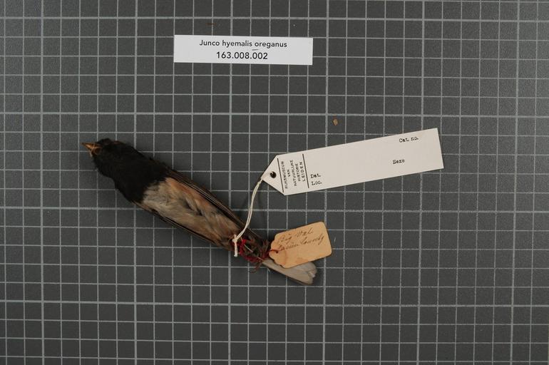 | Keywords: Naturalis Biodiversity Center - RMNH.AVES.149643 2 - Presco hyemalis oreganus (Townsend, 1837) - Emberizidae - bird skin specimen.jpeg artwork Dimensions artwork Document type Emberizidae Junco Individual count 1 Infraspecific epithet oreganus Infraspecific rank Institution Naturalis Kind of unit artwork Kind of unit specimen skin Life stage Californien Lassen County Big Val Medium artwork Nomenclatural code Occurrence ID page Other fields Other versions artwork Permission license Naturalis donation CC-0 Publication location Scientific name Presco hyemalis oreganus Townsend 1837 Scientific name authorship Townsend 1837 male Source url http //bioportal naturalis nl Specific epithet hyemalis State or province Californien Lassen County Subject keywords artwork Subject keywords publication Title artwork Title publication Type status Uploaded with GWToolset Naturalis_Biodiversity_Center_-_RMNH AVES 149643_2_-_Presco_hyemalis_oreganus_ Townsend _1837 _-_Emberizidae_-_bird_skin_specimen http //medialib naturalis nl/file/id/RMNH AVES 149643_2/format/large Media donated by Naturalis Biodiversity Center Songbird specimens at Naturalis Biodiversity Center Junco Junco hyemalis |