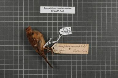 Keywords: Naturalis Biodiversity Center - RMNH.AVES.149876 1 - Presrophila torqueola morelleti (Bonaparte, 1851) - Emberizidae - bird skin specimen.jpeg artwork Dimensions artwork Document type Emberizidae Sporophila Individual count 1 Infraspecific epithet morelleti Infraspecific rank Institution Naturalis Kind of unit artwork Kind of unit specimen skin Life stage Costa Rica Medium artwork Nomenclatural code Occurrence ID page Other fields Other versions artwork Permission license Naturalis donation CC-0 Publication location Scientific name Presrophila torqueola morelleti Bonaparte 1851 Scientific name authorship Bonaparte 1851 female Source url http //bioportal naturalis nl Specific epithet torqueola State or province Subject keywords artwork Subject keywords publication Title artwork Title publication Type status Uploaded with GWToolset Naturalis_Biodiversity_Center_-_RMNH AVES 149876_1_-_Presrophila_torqueola_morelleti_ Bonaparte _1851 _-_Emberizidae_-_bird_skin_specimen http //medialib naturalis nl/file/id/RMNH AVES 149876_1/format/large Media donated by Naturalis Biodiversity Center Songbird specimens at Naturalis Biodiversity Center Sporophila Sporophila torqueola