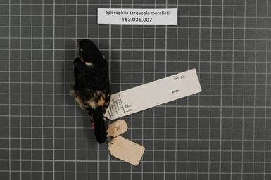 Keywords: Naturalis Biodiversity Center - RMNH.AVES.149881 2 - Presrophila torqueola morelleti (Bonaparte, 1851) - Emberizidae - bird skin specimen.jpeg artwork Dimensions artwork Document type Emberizidae Sporophila Individual count 1 Infraspecific epithet morelleti Infraspecific rank Institution Naturalis Kind of unit artwork Kind of unit specimen skin Life stage Honduras San Pedro Medium artwork Nomenclatural code Occurrence ID page Other fields Other versions artwork Permission license Naturalis donation CC-0 Publication location Scientific name Presrophila torqueola morelleti Bonaparte 1851 Scientific name authorship Bonaparte 1851 male Source url http //bioportal naturalis nl Specific epithet torqueola State or province Subject keywords artwork Subject keywords publication Title artwork Title publication Type status Uploaded with GWToolset Naturalis_Biodiversity_Center_-_RMNH AVES 149881_2_-_Presrophila_torqueola_morelleti_ Bonaparte _1851 _-_Emberizidae_-_bird_skin_specimen http //medialib naturalis nl/file/id/RMNH AVES 149881_2/format/large Media donated by Naturalis Biodiversity Center Songbird specimens at Naturalis Biodiversity Center Sporophila Sporophila torqueola